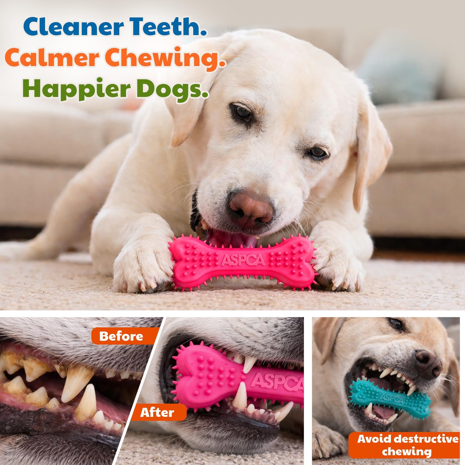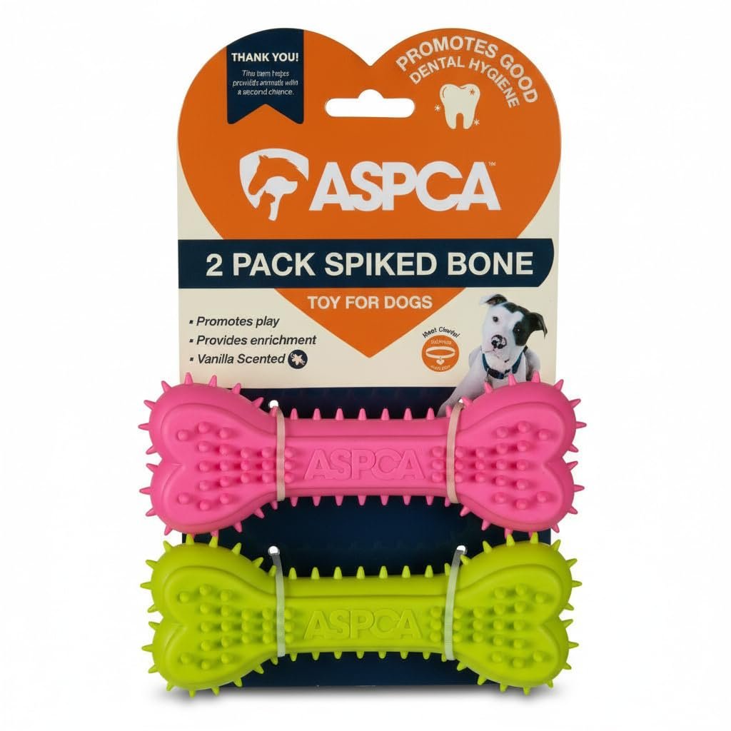 ASPCA 2-Pack Spiky TPR Bone Dog Toys – Vanilla Scented Chew Bones for Dental Health, Interactive Play & Enrichment
