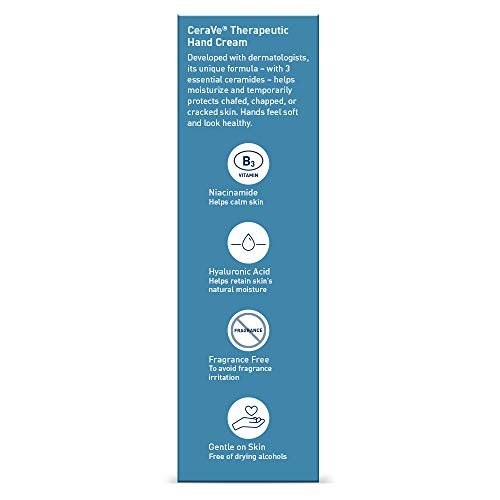 CeraVe Therapeutic Hand Cream for Dry Cracked Hands With Hyaluronic Acid and Niacinamide, Fragrance Free 3 Ounce