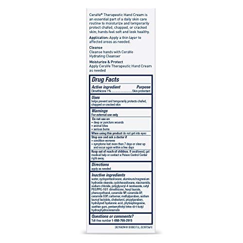 Details: Developed with dermatologists, CeraVe Therapeutic Hand Cream helps protect and restore the skin barrier from harmful irritants. It contains three essential ceramides (1, 3, 6-II) that help restore and maintain the skin’s natural protective barrier. This fragrance-free hand cream also contains the skin protectant dimethicone, and the water-resistant, non-greasy, fast-absorbing, non-irritating formula features patented MVE Delivery Technology for 24-hour nourishment that restores and maintains smooth, soft skin.