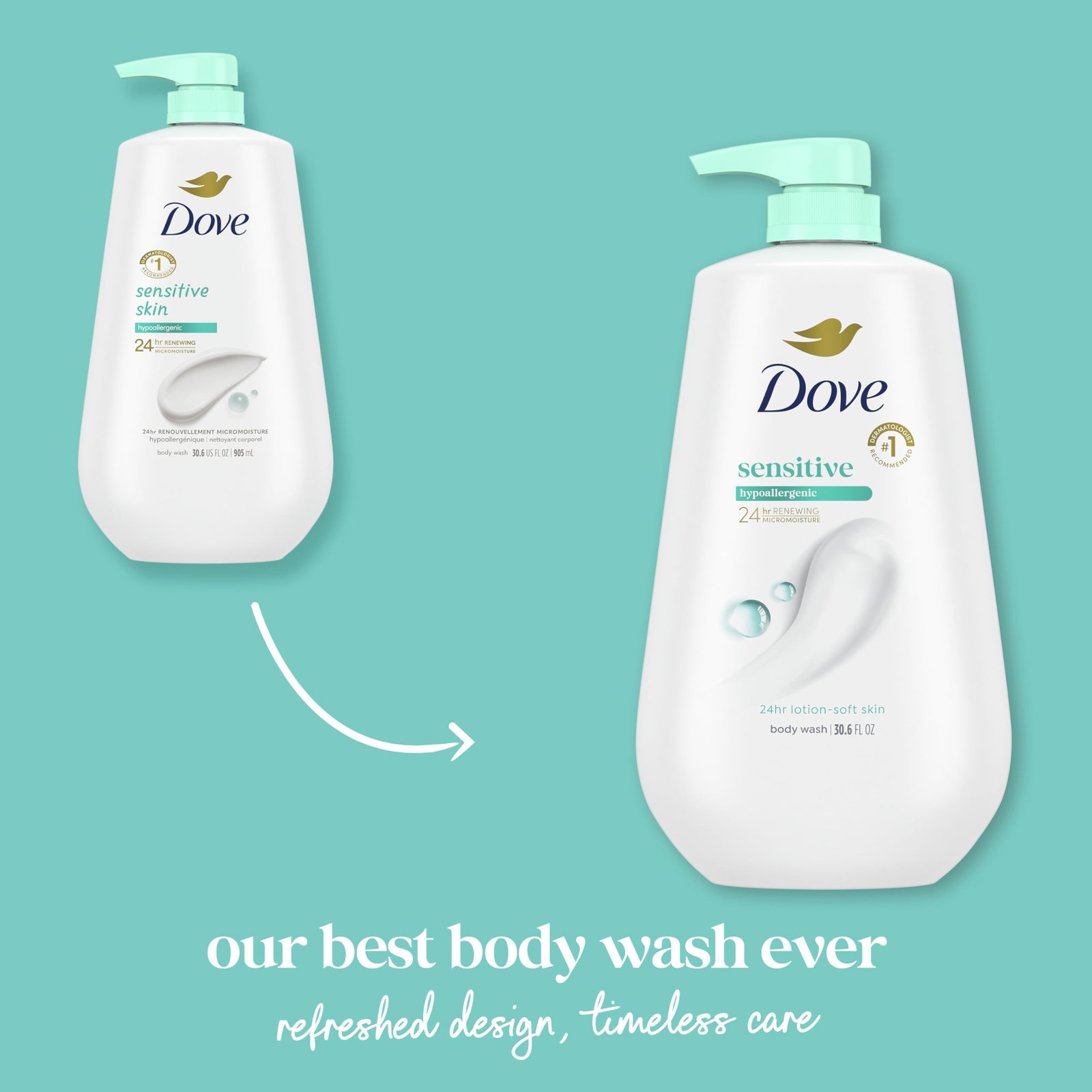 Dove Body Wash with Pump Sensitive Skin For 24hr Lotion-Soft Skin Moisturizing Skin Cleanser Gentle Hypoallergenic Formula with No Sulfates No Parabens 30.6 oz