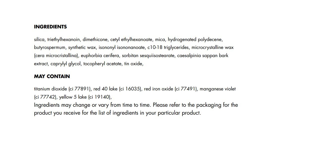 Details: What it is: A cream-to-powder, wear-everywhere blush stick stick that delivers a highly blendable kiss of color to eyes, lips and cheeks.
