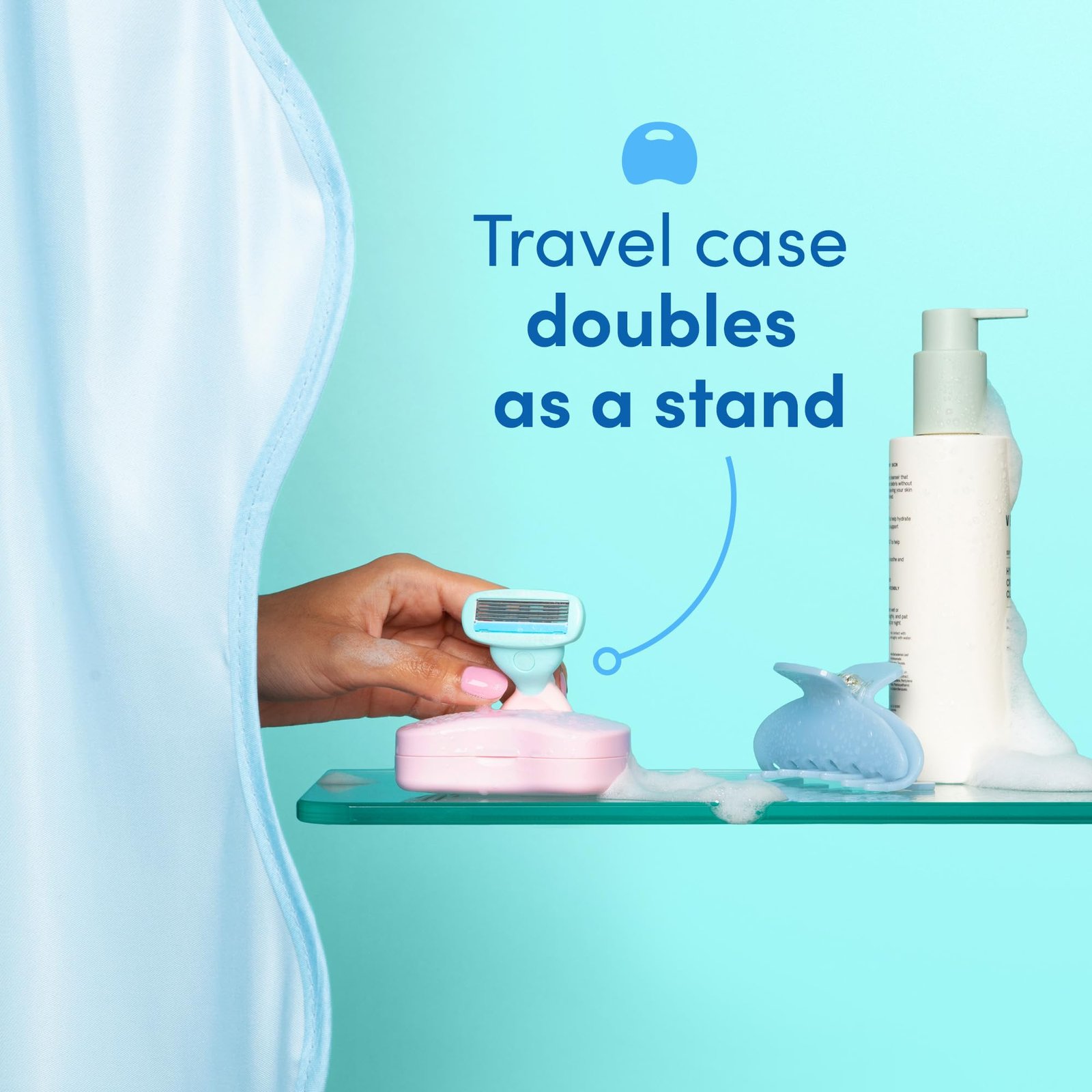 - CASE DOUBLES AS A SHOWER STAND – Our new mini razor comes in a cute case that doubles as a shower stand and is vented to keep your razor clean & dry on the go.