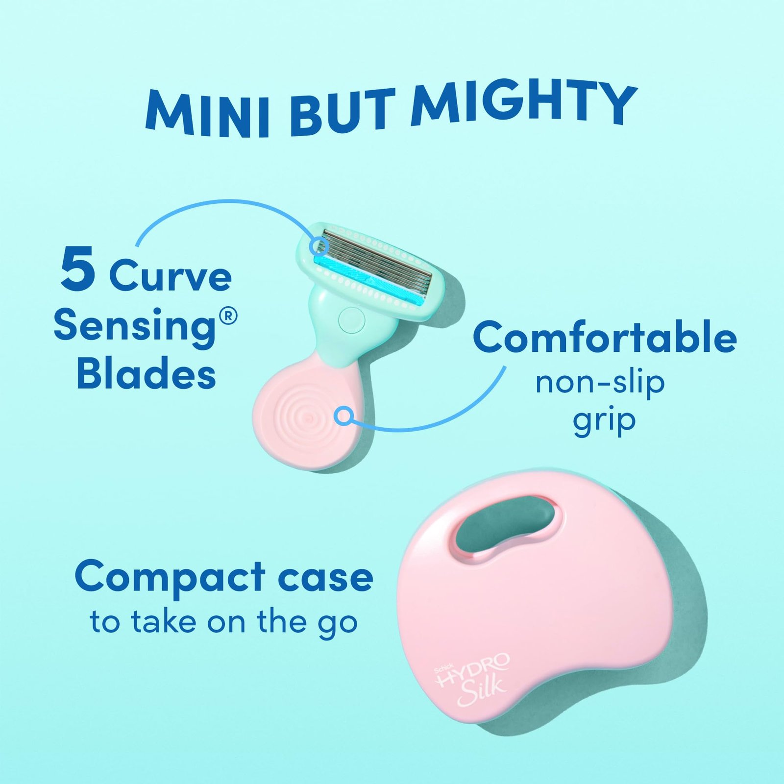 Schick Hydro Silk Mini Razor for Women | Womens Razors for Shaving, Travel Size Toiletries, 5-Blade Travel Razor, Includes 1 Mini Handle, 1 Refill & 1 Case