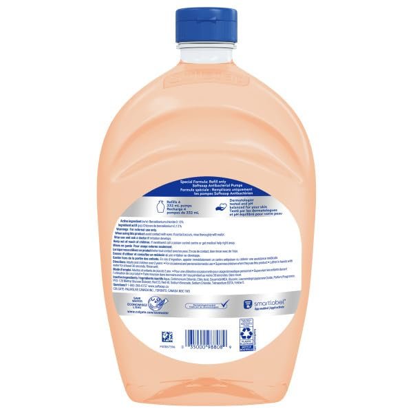 Details: Softsoap Antibacterial Liquid Hand Soap, Crisp Clean is clinically proven to eliminate 99.9% of bacteria (in a handwashing test vs. the following common harmful bacteria’s. Aureus & E. coli). Softsoap is America’s #1 Liquid Hand Soap brand, trusted to clean your hands since 1975. Due to its unique formula, the liquid hand soap pump should only be refilled with Softsoap Antibacterial Liquid Hand Soap. Wash hands with soap and clean running water for 2 seconds.