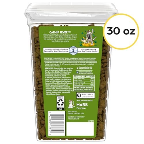 Temptations Cat Treats, Classic Crunchy and Soft Cat Treats, Catnip Fever Flavor, Catnip Treats, 30 oz. Tub