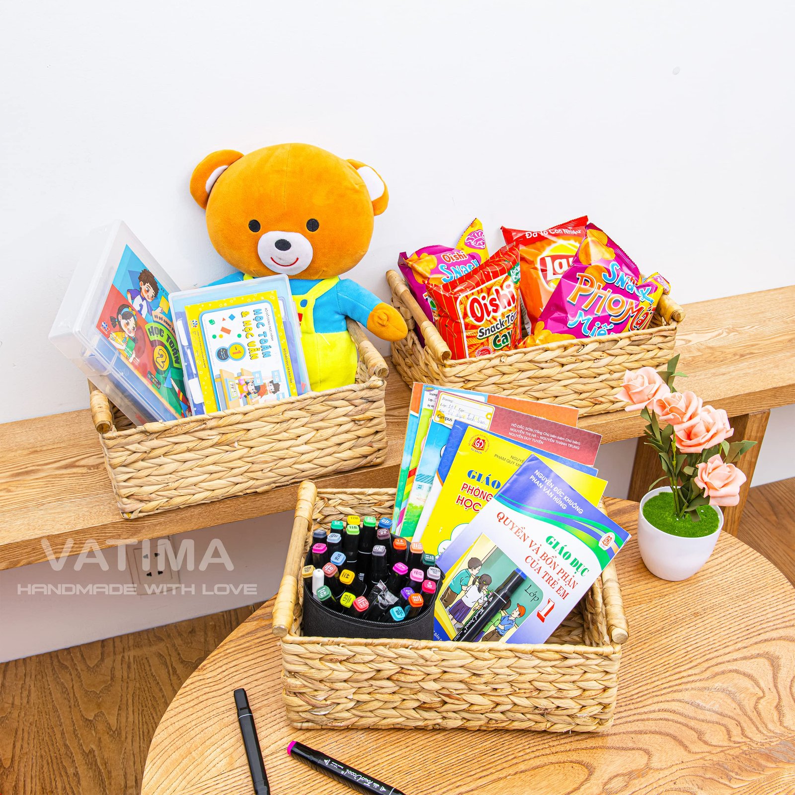 VATIMA Hyacinth Medium Wicker Basket 13.6×9.5×5.6″ – With Handle, Living Room Decor, Rectangular Design