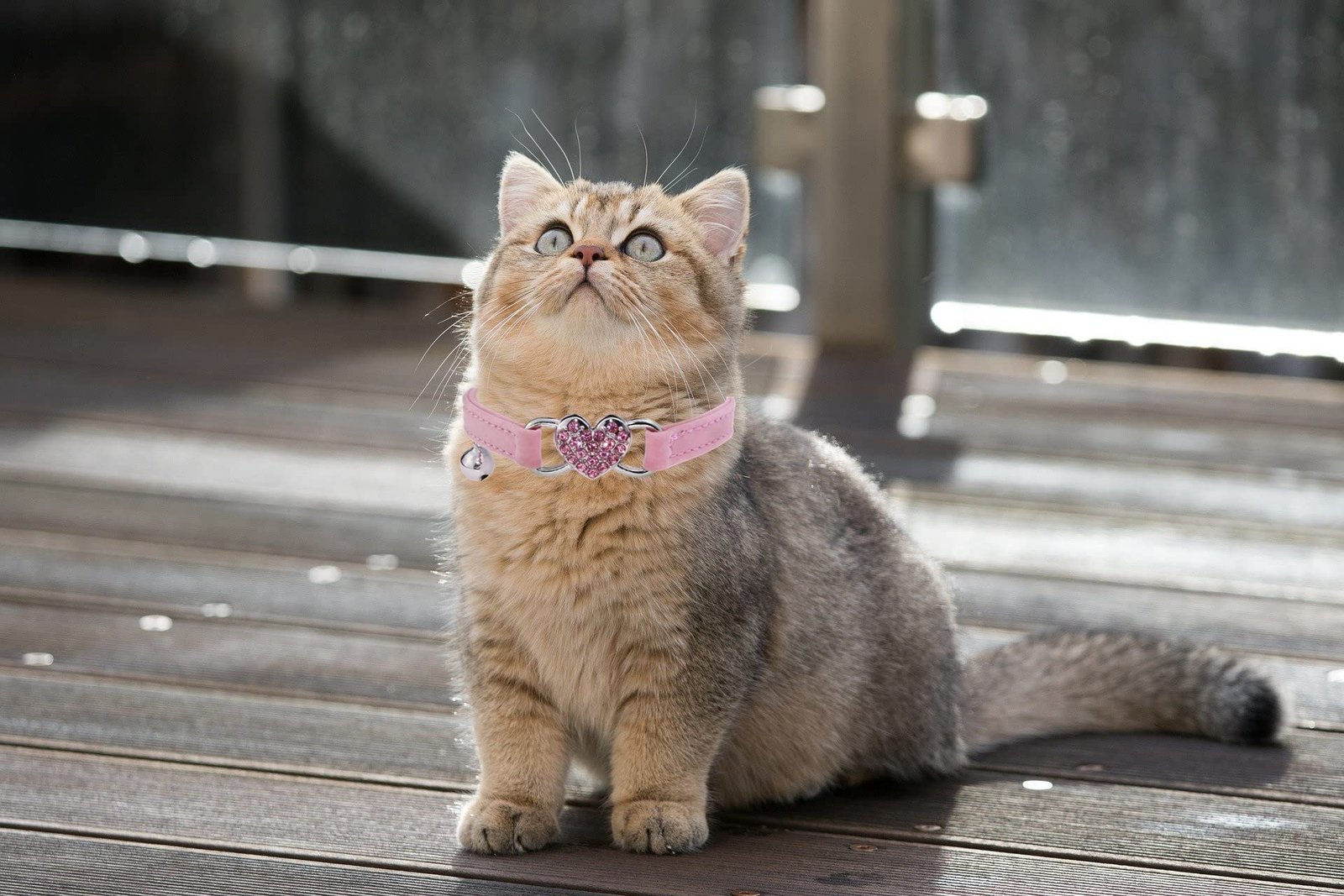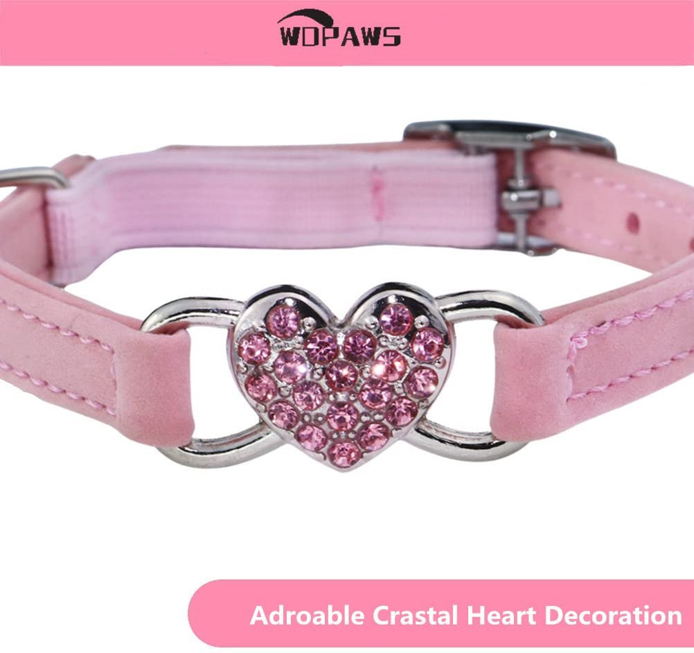 WDPAWS Heart Bling Cat Collar with Safety Belt and Bell Adjustable 8-10 inches for Kitten Cats (Pink)