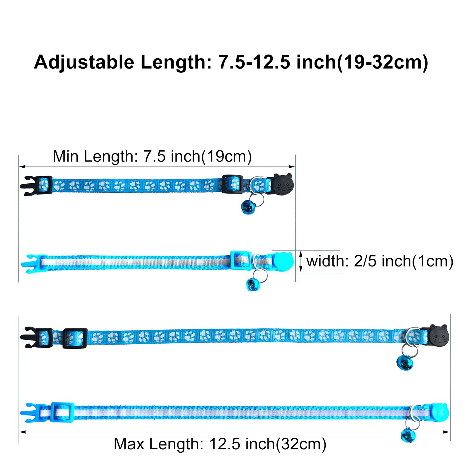 zulinlong 2 Pack Breakaway Cat Collars with Bells, Reflective Design and Claw Print Design, Safety Buckle Kitten Collars Adjustable from 7.5 to 12.5 Inches (Sky Blue)